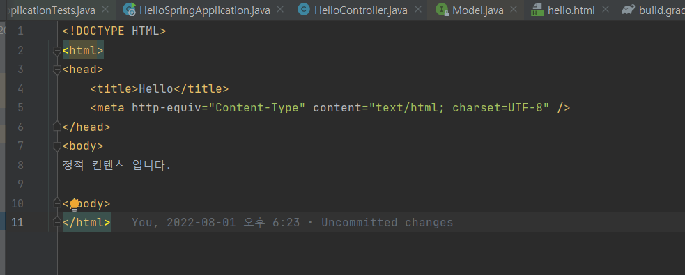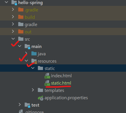 프로젝트의 static이라는 폴더명에 파일을 넣어주면 스프링 부트에서 컨트롤러 설정을 하지 않아도 알아서 찾아준다.