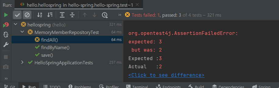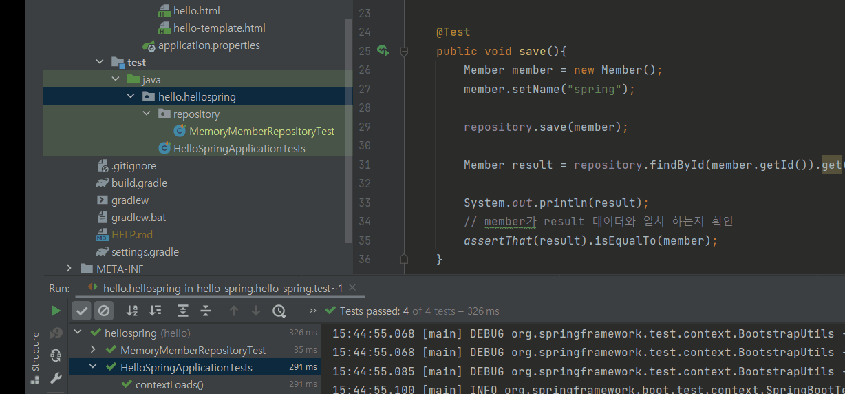@Test: 해당코드를 테스트 진행한다는 어노테이션