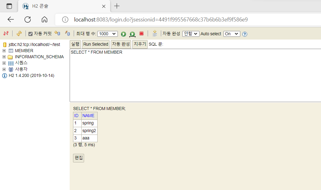 H2 DB를 따로 실행시킨후 진행해야 한다.