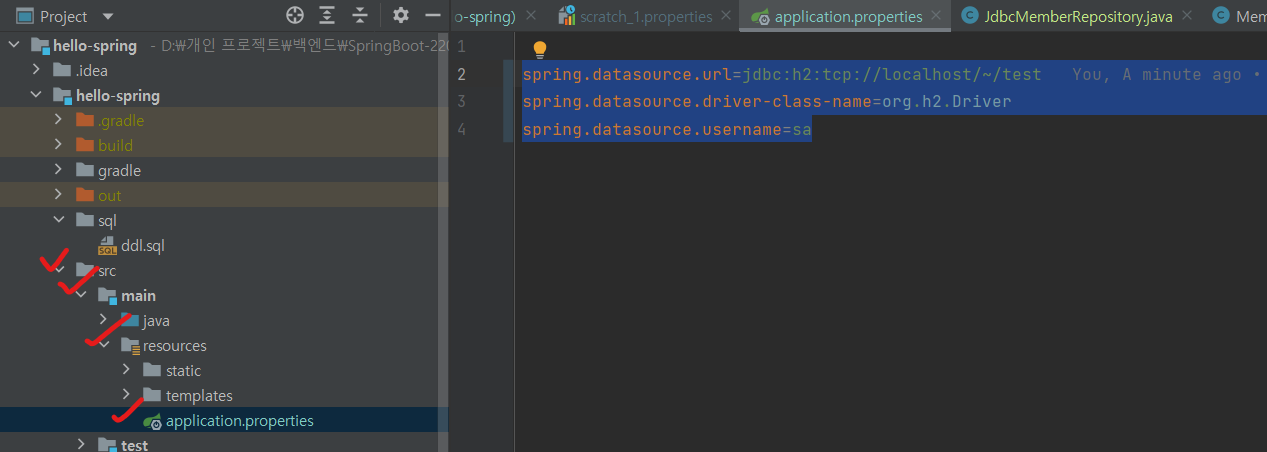 해당 프로젝트에는 h2 DB를 연결한다.