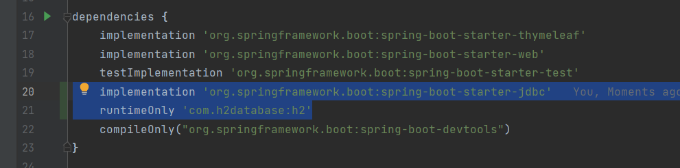 runtimeOnly 'com.h2database:h2'