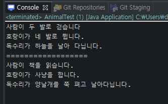 System.out.println("독수리가 하늘을 날아 다닙니다.");