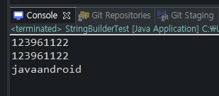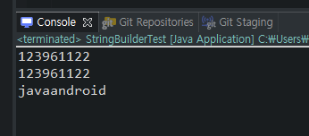 - 단일 쓰레드 프로그램에서는 StringBuilder 사용을 권장(단일 쓰레드: StringBuilder, 멀티쓰레드: StringBuffer)